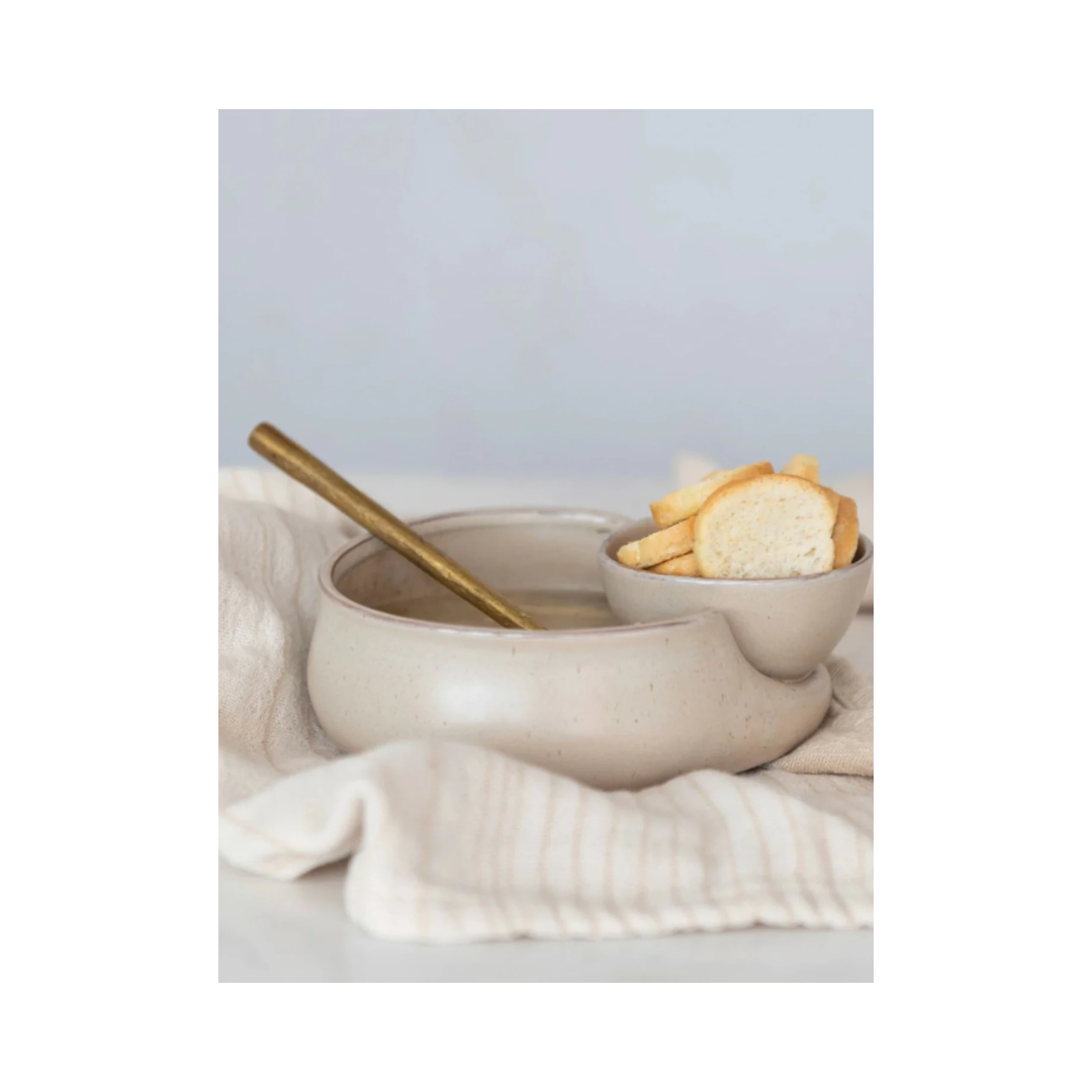 A versatile stoneware cracker and soup bowl designed to keep your soup and crackers perfectly paired in one convenient dish. The durable stoneware retains heat well while the divided design keeps crackers crisp until the last bite.