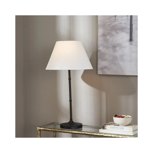 Add a dash of modern rustic charm to any room with this handsome table lamp that’s designed with a matte black-plated finish to evoke the look of wrought iron. As at home in transitional spaces as it in in contemporary interiors, add one or a pair to your decorating scheme to ground the room with a stylish touch.