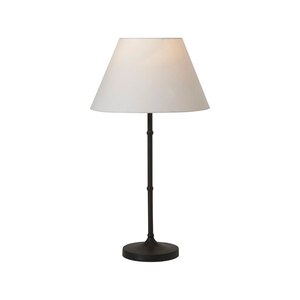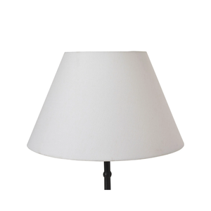 - Material: Cast Aluminum, Plated Matte Black Finish, Off-White Linen Shade