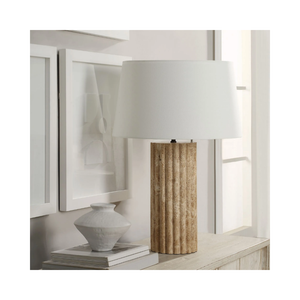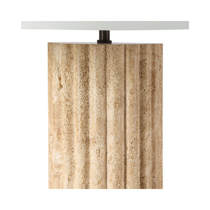 Made with a travertine body, this table lamp puts the unique swirls and patterns of this distinctive stone on display to add a touch of natural elegance to any space. Topped with an ivory linen shade that diffuses a warm glow, this lamp delivers transitional style and dimmable lighting at the flick of a switch.