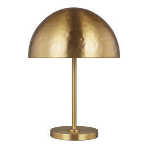 Matching the oversized Whare pendant this lamp mimicks a similar sensibility with a hammered dome shade and boosts an energy saving LED bulb included with the fixture.