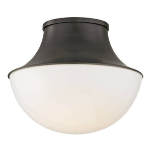 The old bronze spun metal base of this fixture meets a demi-globe glass shade, perfectly diffusing the high-performance LED light.