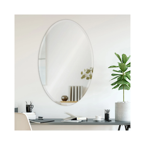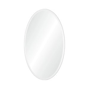 This is an elegant frameless mirror featuring a curved oval shape. Its simple timeless shape add a touch of sophistication, making it a perfect addition to bathrooms, bedrooms, or entryways.