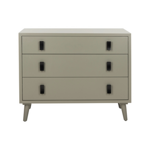 This retro-chic Blaize Chest offers a contemporary spin on vintage style. Ideal as a nightstand or as a chest in the living room, its neutral dark grey finish complements any décor, and its black wooden pulls add a touch of industrial luxe to its three spacious drawers.