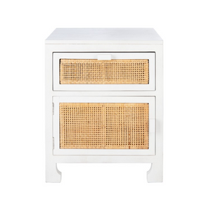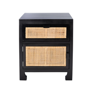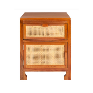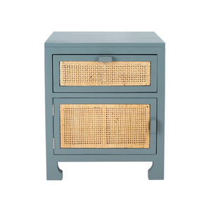 This Dave Nightstand enriches your bedroom’s aesthetic with relaxed coastal ambiance. Dave’s door and drawer are given a soothing tropical aura with natural rattan, pairing beautifully with its blue-grey mahogany wood frame.