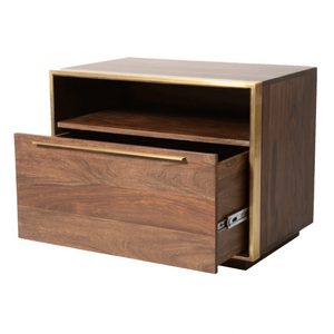 Simple yet sophisticated, the Focus Nightstand is elegant in its detail-oriented craftsmanship. Made of solid sheesham wood, the classic design is maintained with brass detailing and minimal hardware.