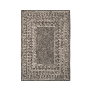 This exotic-chic indoor-outdoor rug displays ornamental designs coloured in neutral tones. Concentric borders filled with detailed unique patterns bring a distinctive look to decks, porches, and patios.