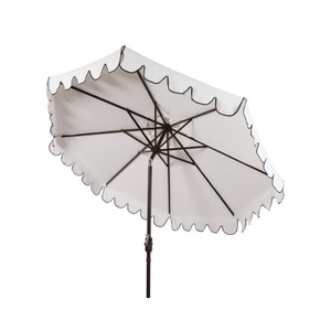 The signature backdrop of Santorini’s lush legendary resort inspired this rectangular market umbrella. Its chic colour tones feature a matching scalloped trim to create an outdoor retreat for the modern tastemaker. Available in 3 sizes: 7.5 FT, 9 FT, 11 FT.