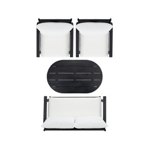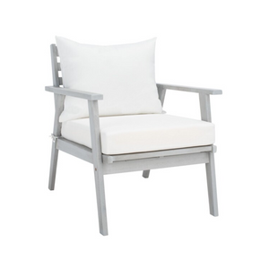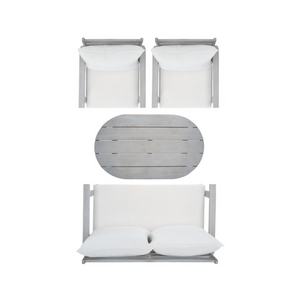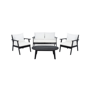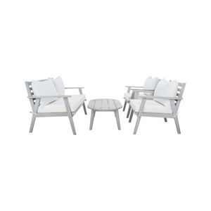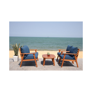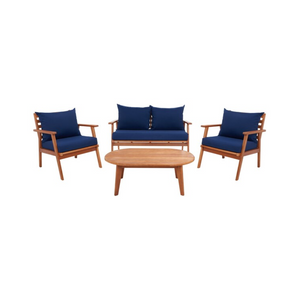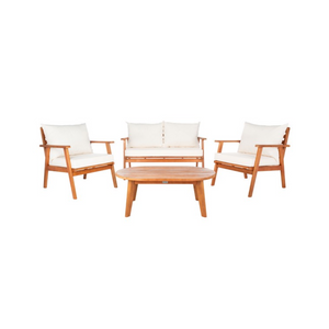 Designed for value and versatility, this contemporary 4-piece living set creates an instant outdoor room in any open-air space. Comfy beige pillows sit on expertly crafted acacia wood frames, while its circular table is ideal for entertaining.