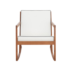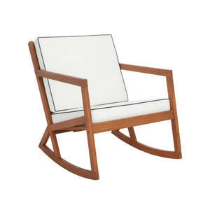 Contemporary with a nod to hand-crafted individuality, this elegant outdoor rocking chair is destined to become a new American classic. Made from Acacia wood in natural finish, it comes with easy-care front and back cushions.