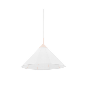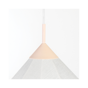 Gloria's textural fabric shade is translucent, perfectly pairing with a pretty painted frame in Blush. Available in both and small and large size.