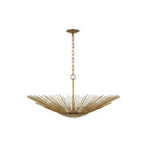 The Helios Wide Pendant is reminiscent of a large starburst. This eye catching, delicate and innovative piece will supply warm illumination to your space. The light radiates from the lamps while reflecting off and through the slender steel rods.