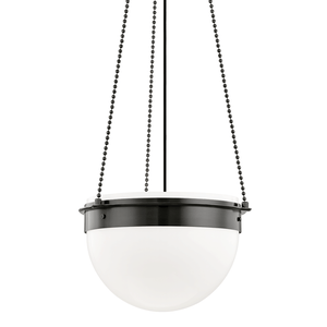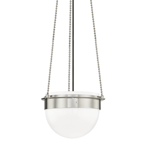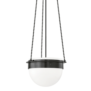 Modernists in ‘20s Vienna sought to make everyday domestic objects works of art with intrinsic aesthetic value. Silo takes inspiration from the creators of the Vienna Workshops, presenting a classy pendant with unique charm. Beaded chains, a ridged holder, and a timeless white half sphere diffuser make for a pleasing fixture with subtle details. Suspend it low for even more sophistication.