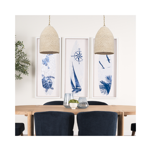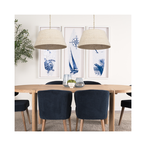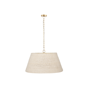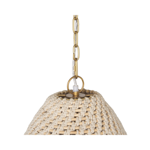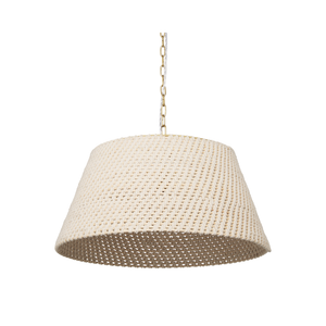 The Tosha Pendant features a handwoven, textured shade in a neutral tone, creating a warm and inviting ambiance. Suspended by a stylish chain, this pendant light blends artisanal craftsmanship with modern elegance, making it a perfect addition to any space. Available in two shapes.