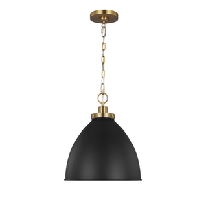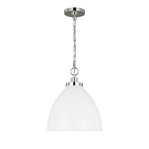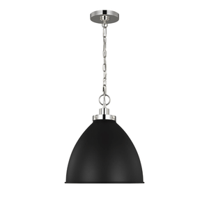 The Wellfleet Pendant Light is a clean and modern fixture designed with industrial detailing. Its dome shaped shade is dropped from a thin chain and topped with a sleek steel base.