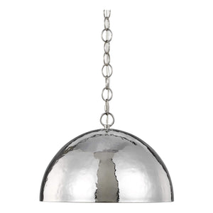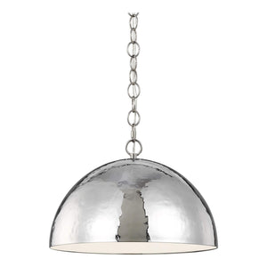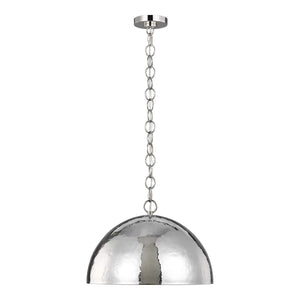 An oversized dome with a hammered texture and a burnished brass finish help to give this fixture a fluid feel. Pairs perfectly with the Whare table lamp.
