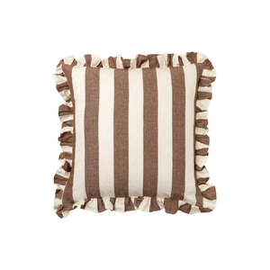 Add a playful yet polished accent to your home with the Ruffle Thick Stripe Pillow. Handmade from a 50% linen, 50% cotton blend, this pillow pairs classic stripes with a soft ruffle border for a timeless French cottage feel.