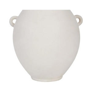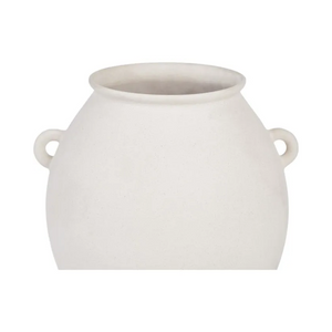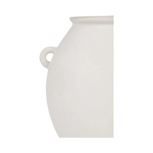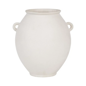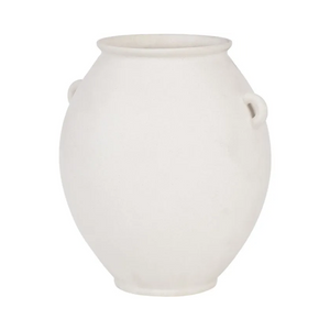 An ancestral aesthetic radiates from this vase whether it’s sitting empty or holding florals. Composed of ceramic stoneware with 9 by 10-inch dimensions, it offers several opportunities for setting. With an off-white matte glaze, this design has a glow while remaining calming in neutrals.