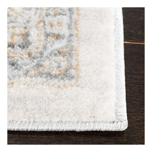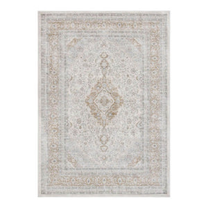 This transitional area rug in a beautiful cream and beige colour is inspired by vintage Persian rugs. The low pile height and power loomed construction make this rug easy to layer and very forgiving in high traffic areas.