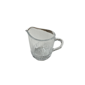 Incorporate this nostalgic glass creamer into your brunch or coffee/tea time. Designed with a French flair, it features a simple, ribbed base and uniquely curved top to spout with LAIT embossed on the side.