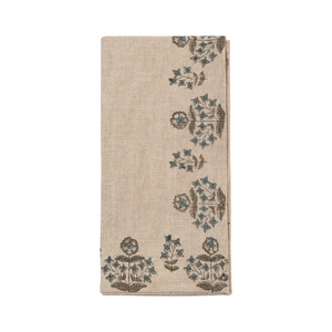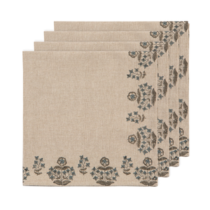 Hand block-printing holds a long and rich history in Indian textiles. It’s a skilled craft, shared generation to generation. Each handcarved wooden block is stamped in ink and applied with expertise to the fabric creating complex, interconnected patterns. Our Salvia napkin set of 4 is from the Chambray collection and features a luxe heavier-weight cotton adorned by hand with beautiful block print designs. Combining this sturdy textile with the skilled craftsmanship of block printing creates a piece worthy of being passed down for generations.