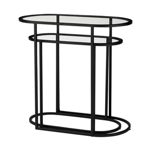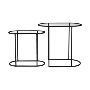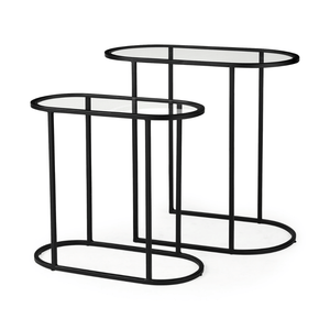 Made of metal and glass, the Celine nesting tables make for a timeless piece. Finished in a matte black metal frame, these accent tables made a simple yet stylish accent to a room. These tables can be nested together as a bold accent piece or used individually to serve in different areas.