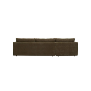 The Bryn sectional brings together style and sustainability. A larger profile is finished in a boucle, velvet and wool blend as warm tones and textured materials reflect traditional, heirloom-like qualities. This piece is upholstered with GRS© (Global Recycled Standard) certified, and also features a frame crafted from FSC®-certified wood, which ensures that the wood is sourced from responsibly managed forests, and the product is manufactured in good working conditions, with minimal environmental and chemical impacts.