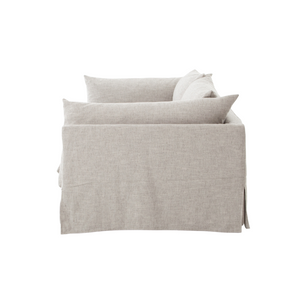 A slipcovered sofa made for modern living. Shelter arms and big, pillow-inspired cushions are covered in a durable, extraordinarily comfortable fabric prime for lounging.