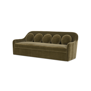 The Rialto sofa straddles the traditional and the contemporary, with mid-century inspiration through five playful, pancake-shaped pillows. An embrace of everyday living proportioned for relaxation, this piece features inviting round forms and durable, forgiving Performance Fabric upholstery, balancing playful sophistication and enduring elegance. Available in two colours.