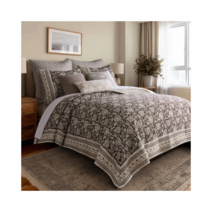 The Adare Reversible Quilt Set by Levtex Home is inspired by distinctive fashionable wall coverings. Offered in a beautiful sage green and Cocoa Brown, this design will immediately transform your bedroom. This reversible quilt features beautiful flowers in bloom and vines with a distinctive border all around on the front, reversing to a striped border floral vine design on the back. The Quilt Set has a cotton front and back, filled with a cotton-rich filler, and are machine washable. Enjoy this for years to come!