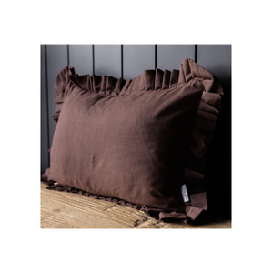 Add an elegant touch to any room with our Soild Ruffle Brown Lumbar Pillow. Crafted from high-quality cotton, this pillow features a unique ruffled edge and a stylish brown cotton fabric. Elevate your home decor with this luxurious piece.