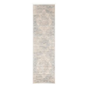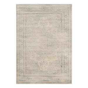 Wonderfully fuses classic elegance with modern style, featuring a traditional medallion in rich, contemporary hues. Décor-friendly in rippling cream tones with gentle touches of light blue. Power-loomed using shimmering viscose and soft cotton yarns for lasting splendor and continual comfort.