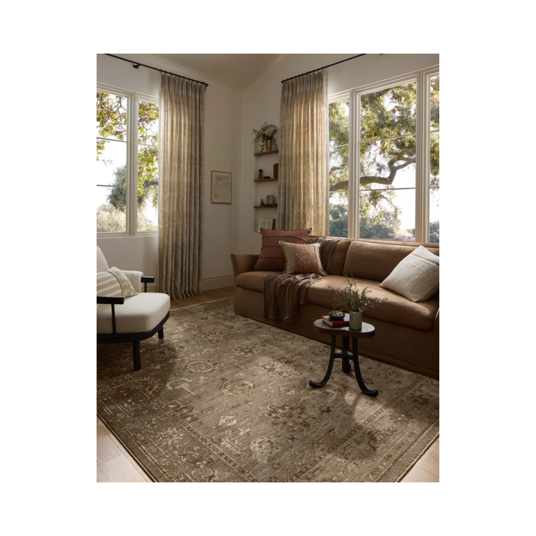 The Haywood Collection is an easy-to-clean, earth-toned area rug with a subtly distressed traditional design. Haywood is power-loomed of polyester in Turkey, a durable area rug for a living room, bedroom, dining room, or other high-traffic spaces.