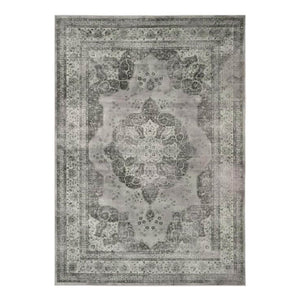This transitional area rug in beautiful shades of grey is inspired by vintage Persian rugs. The low pile height and power loomed construction make this rug easy to layer and very forgiving in high traffic areas.
