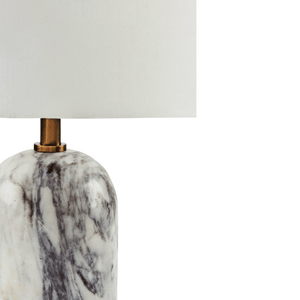 The classic living room interior takes on a luxury feel care of architectural inspired marble details. This table lamp makes a stunning impact when styled in a set, however, it has an exquisite effect when styled solo as well. The iron plated in antique brass and off-white cotton shade, draw out the delicacy and design appeal of the marble element.