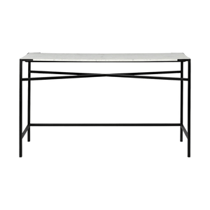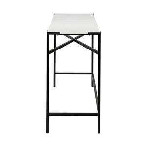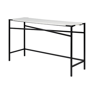 Featuring a four-legged base with cross bracing that is meticulously crafted from metal and finished in a premium matte-black polish, the Lucas is a stunning console table that sports an extravagant, crackled white marble top. The popular but exquisite combination of dark metal tones and white marble makes the Lucas an instant hit in any space.