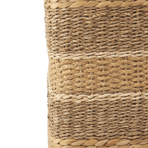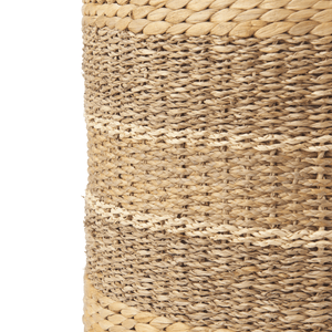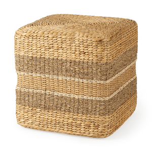 The Maya is constructed with seagrass, and has a unique brown striped pattern that adds visual interest. The Maya pouf has a tropical look and feel to it, with its warm tones and seagrass construction.